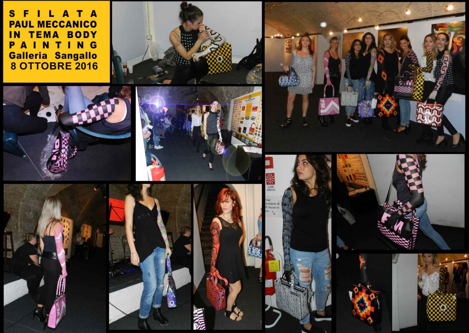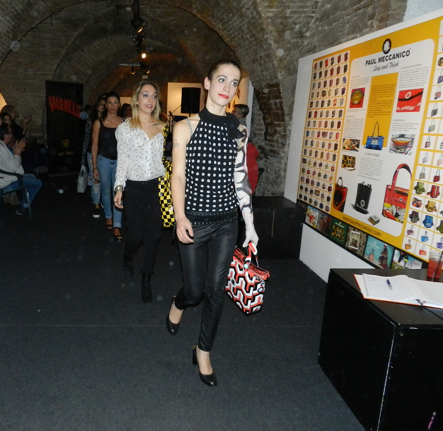 Le quattro fantasie sono state impersonate per l’occasione da dieci splendide modelle che hanno sfilato con il braccio pitturato della stessa grafica delle borse Paul Meccanico che avevano in mano.
