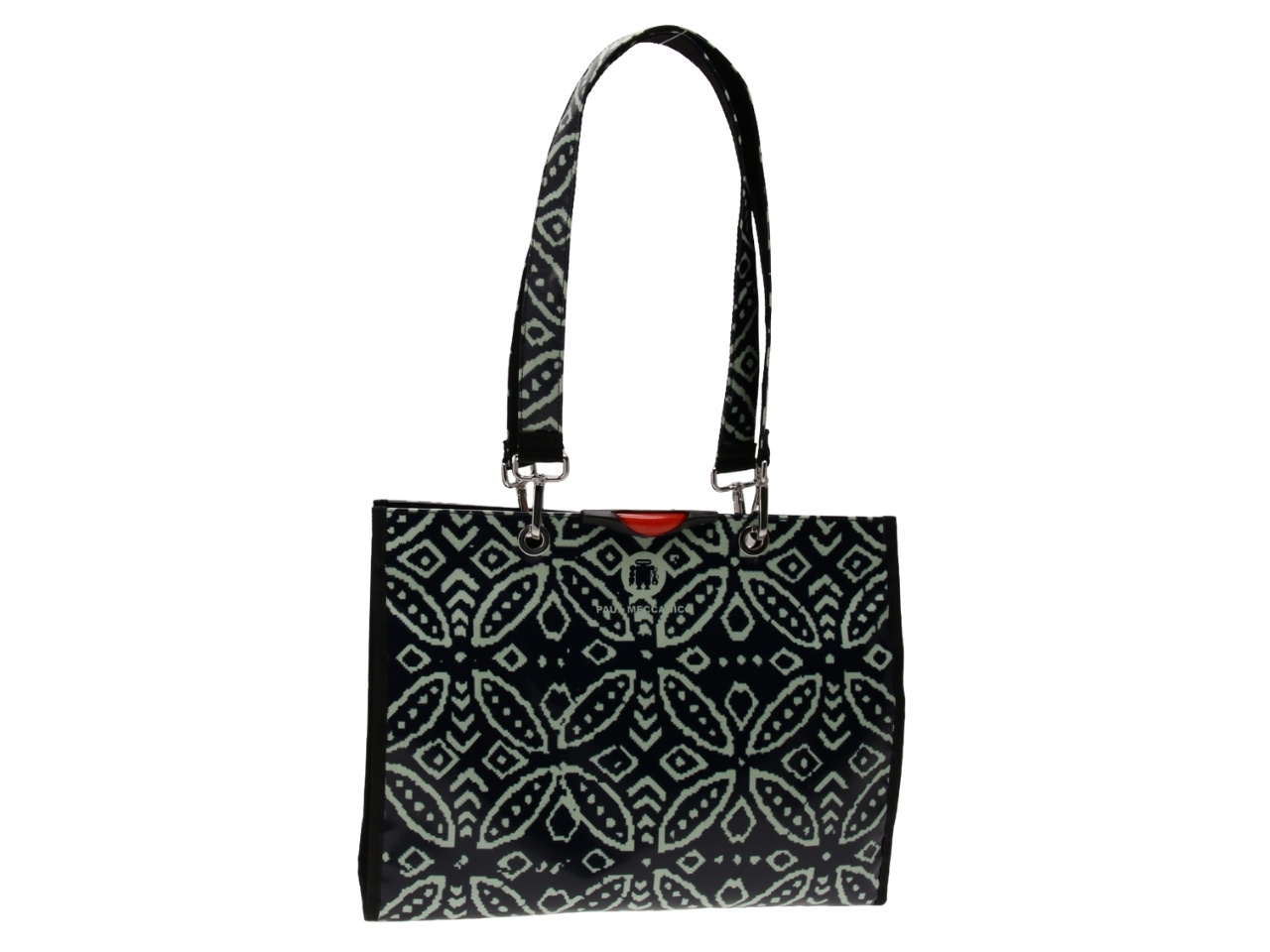 MAXI TOTE BAG VERDE MELA CON FANTASIA DI LETTERE. MODELLO DI AIRSTONE REALIZZATO CON TELONI DI CAMION.