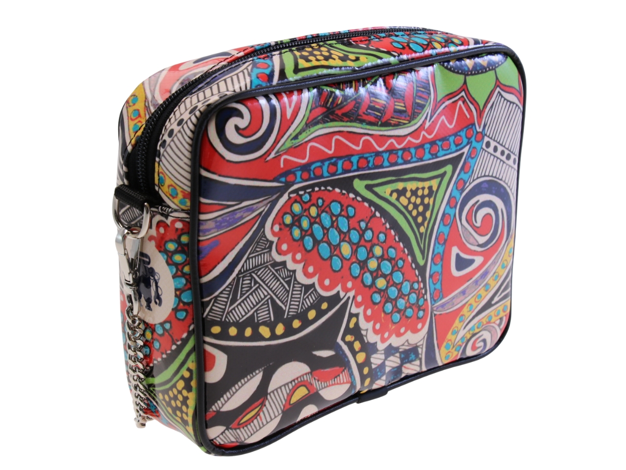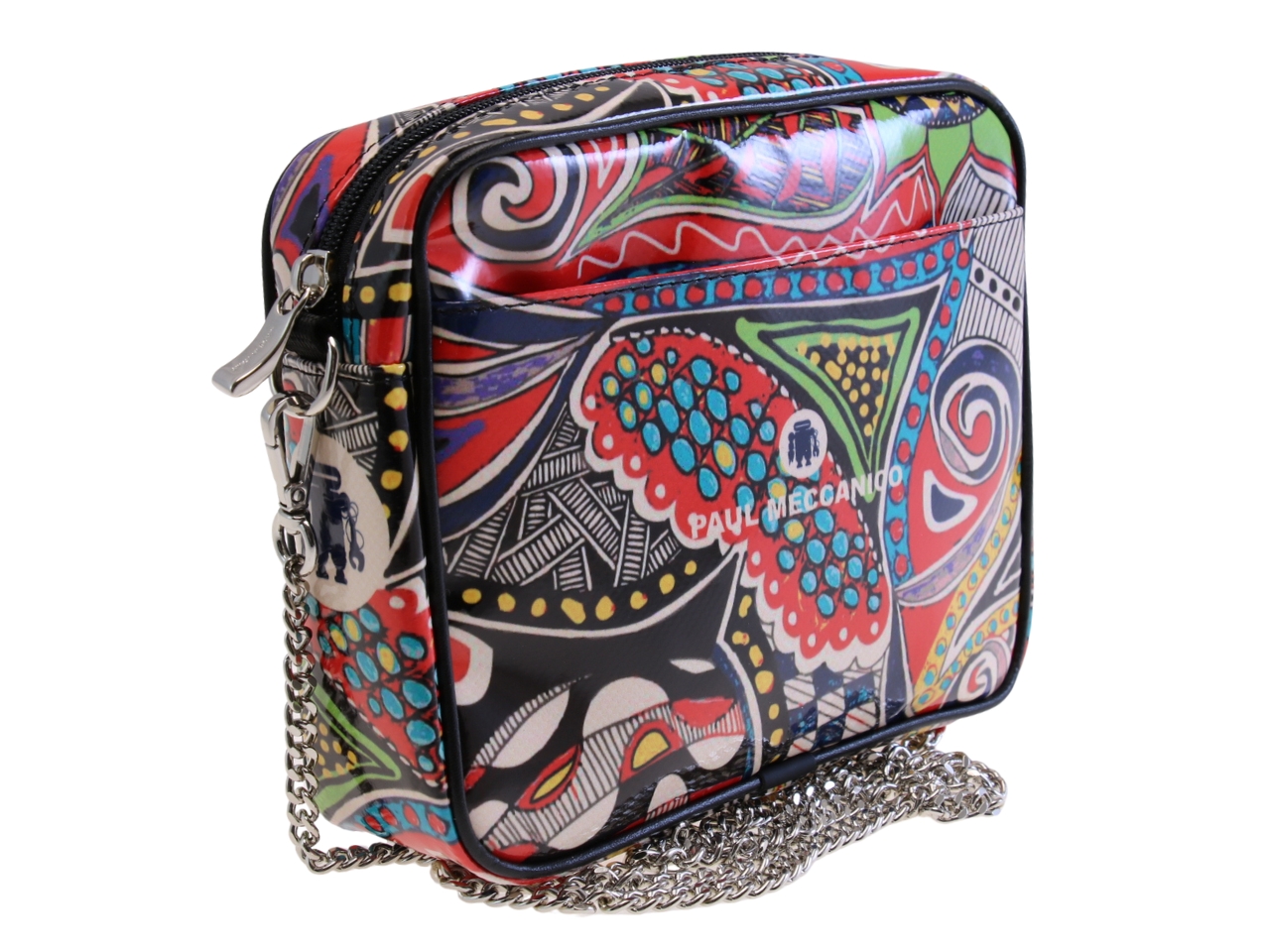 BORSETTA MULTICOLORE FANTASIA ASTRATTA. MODELLO PARK REALIZZATO IN TELONE CAMION
