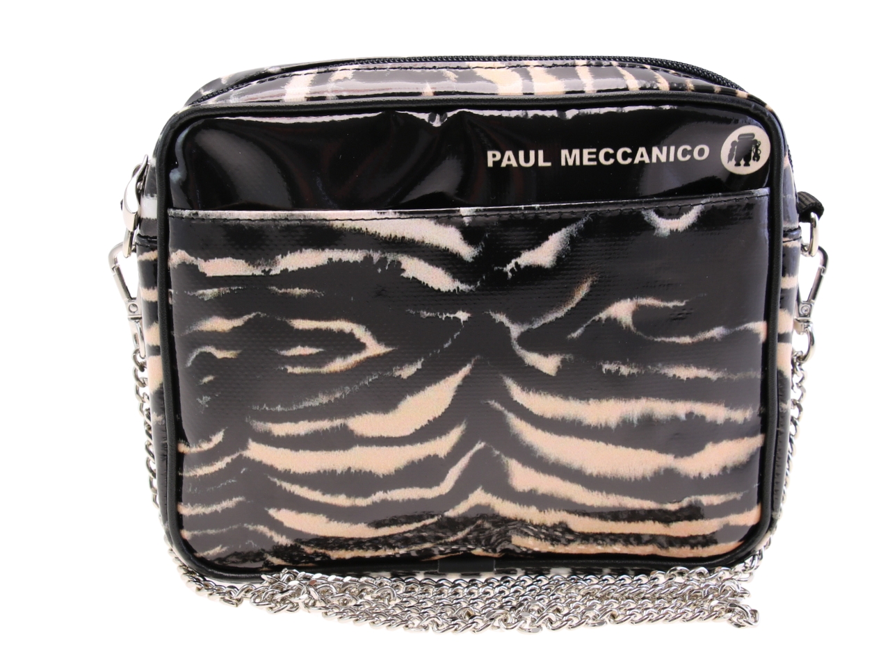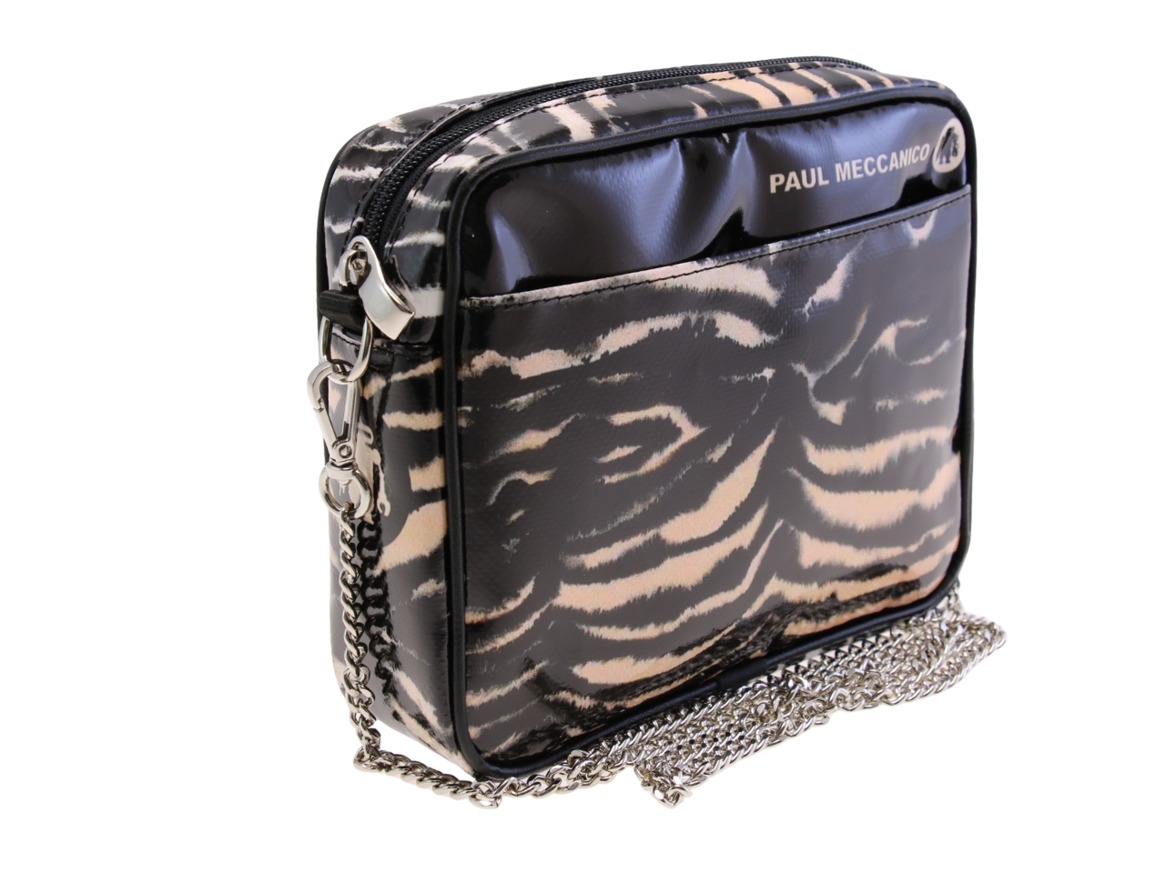 BORSETTA NERA FANTASIA ANIMALIER. MODELLO PARK REALIZZATO IN TELONE CAMION.