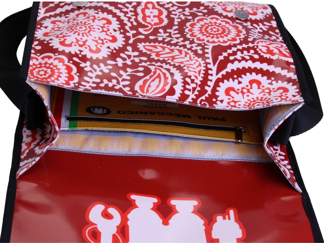 - Interno: L’ampio scomparto principale,1 tasca interna con zip e 1 tasca con velcro.