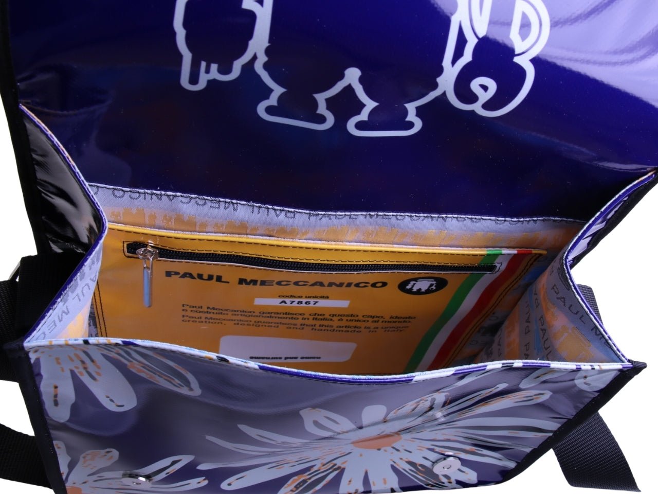 - Protezione ad alta resistenza: Realizzata in telo camion, è una barriera naturale contro acqua e sporco. Sopravvive al caos della città restando impeccabile: basta un colpo di spugna per riportarla alla perfezione dell’atelier.