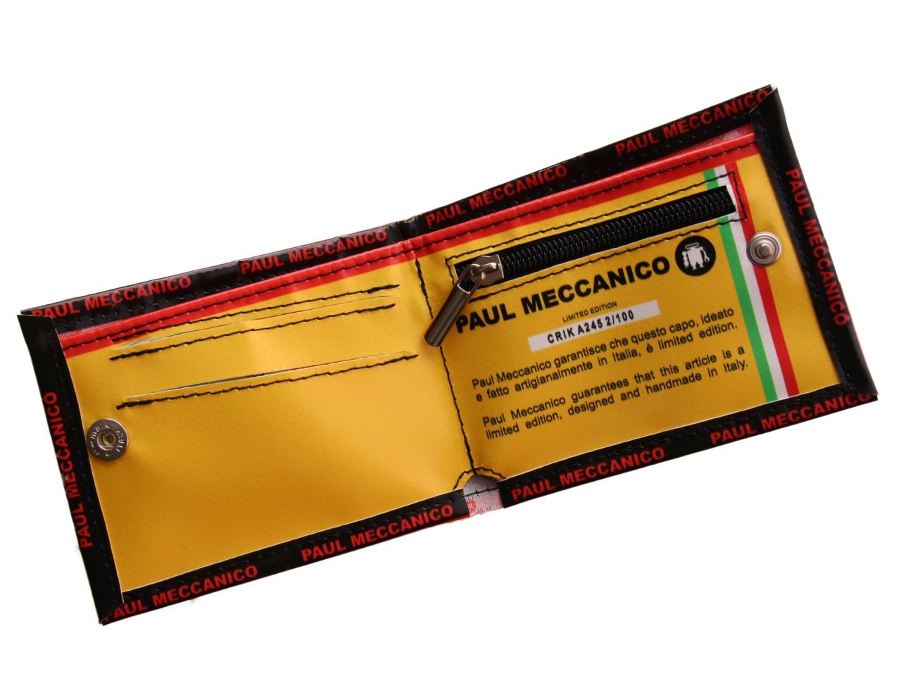 Il CRIK (12 x 9,5 cm chiuso) è un portafoglio pieghevole definito dalla sua silhouette sottile e dalla costruzione in telo camion. Progettato per offrire durevolezza ed efficienza, fornisce una dimora impermeabile per contanti e carte in un telaio raffinato e prodotto in piccola serie. Si tratta di un’Edizione Limitata: una ristretta serie numerata, fatta a mano in Italia.