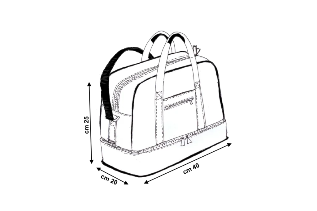 - Dimensioni: 40L x 20P x 25A cm (Ottimizzata come bagaglio da sottosedile).