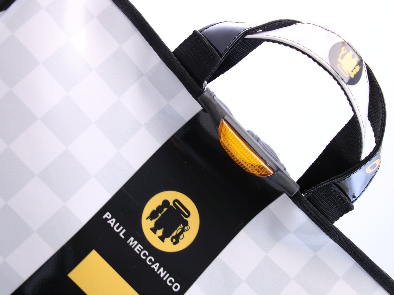- Sicurezza Integrata: Un riflettore iconico offre visibilità essenziale per ciclisti e pendolari serali, integrandosi perfettamente nel design architettonico della borsa. Ci sono 2 tasche extra esterne con zip sul lato posteriore, per una protezione aggiuntiva dei valori durante gli spostamenti urbani.