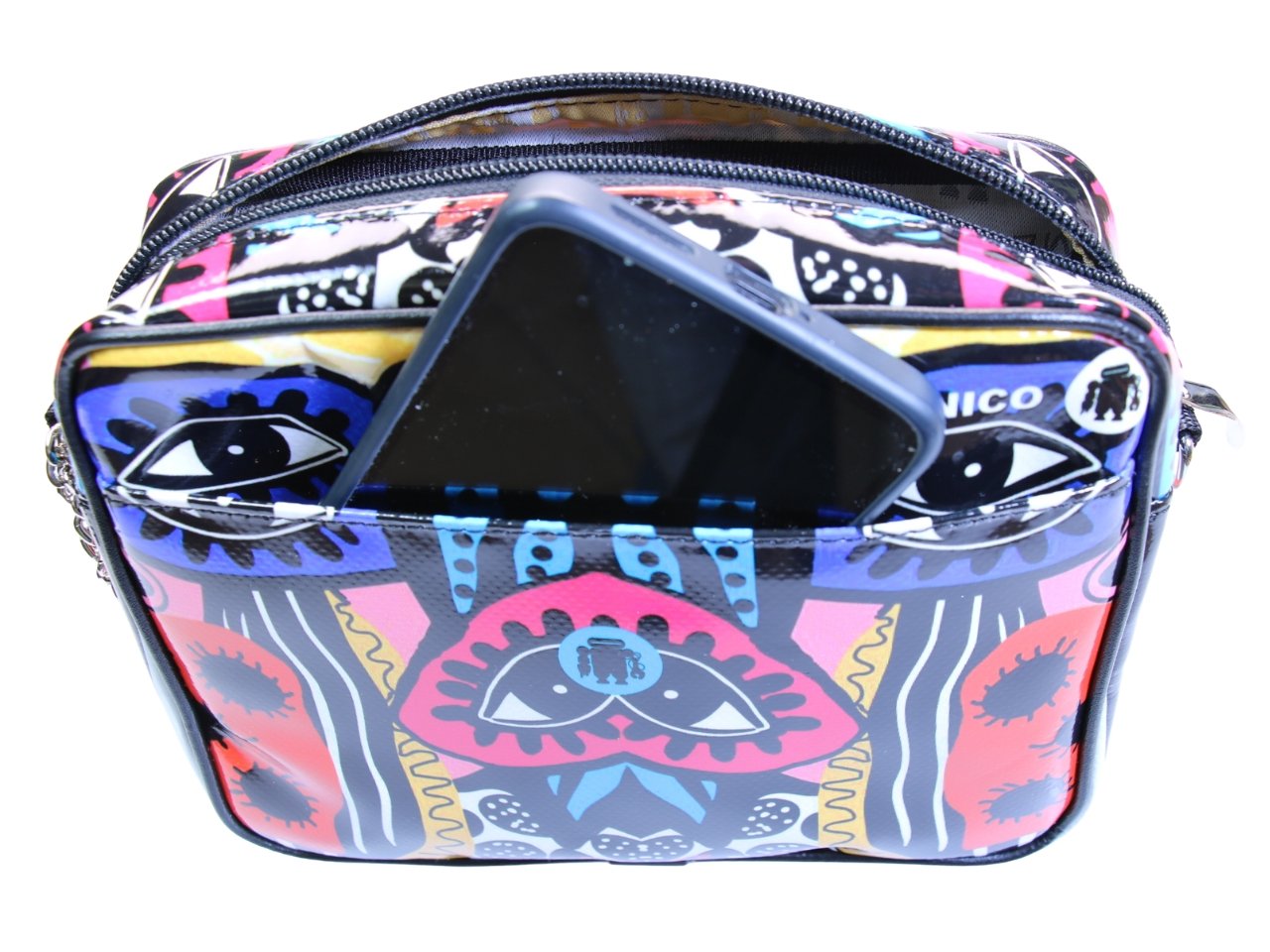• Eleganza Resistente: Realizzata a mano in telo camion, è idrorepellente e resistente ai graffi. Costruita per mantenere nel tempo la sua vivace stampa digitale e la sua forma architettonica.