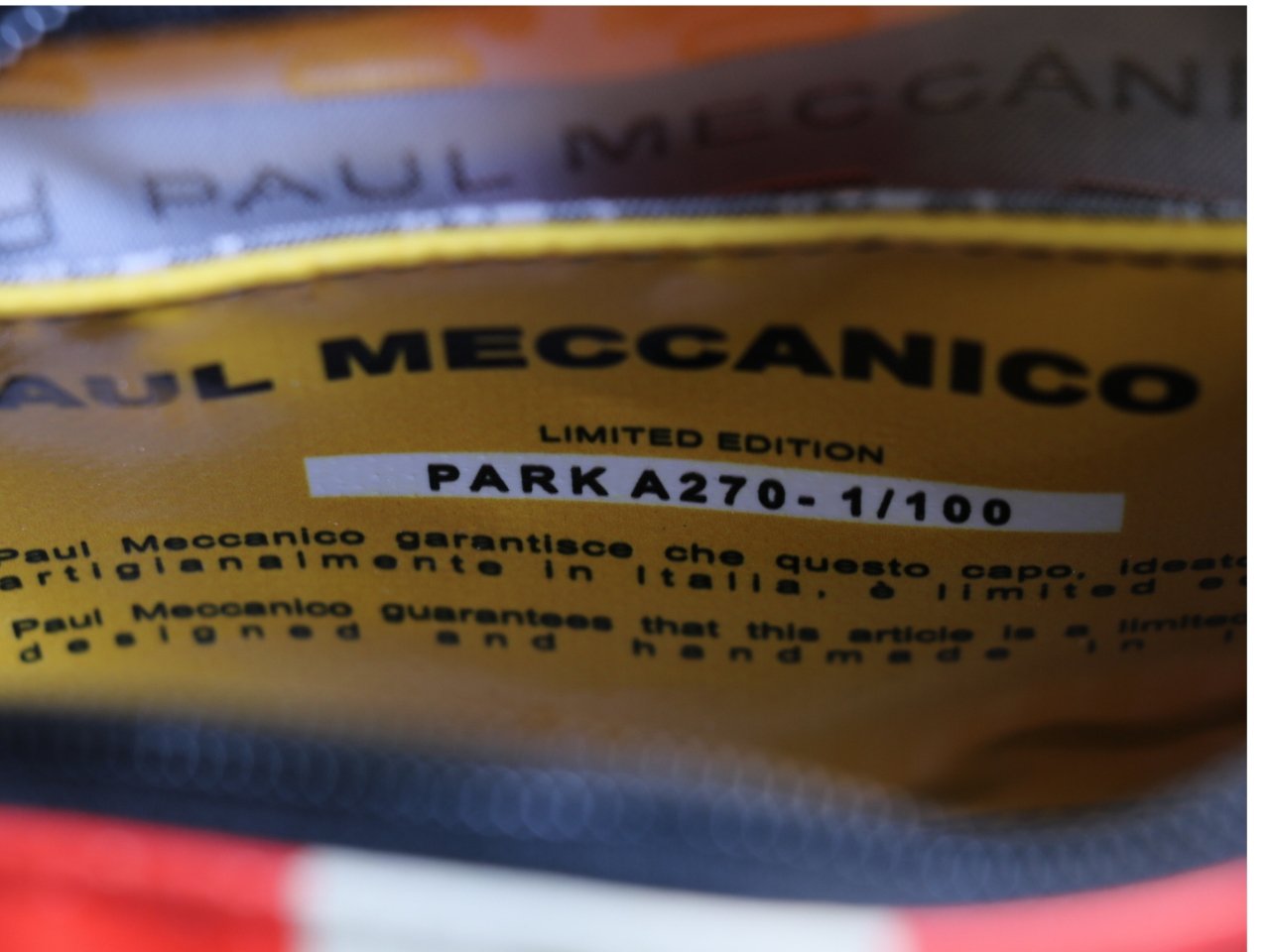 Il tuo pezzo è il N.1 su un totale di 100 borse ed è accompagnato da un Certificato di Autenticità firmato che riporta il tuo Codice di Autenticità e il numero di edizione.