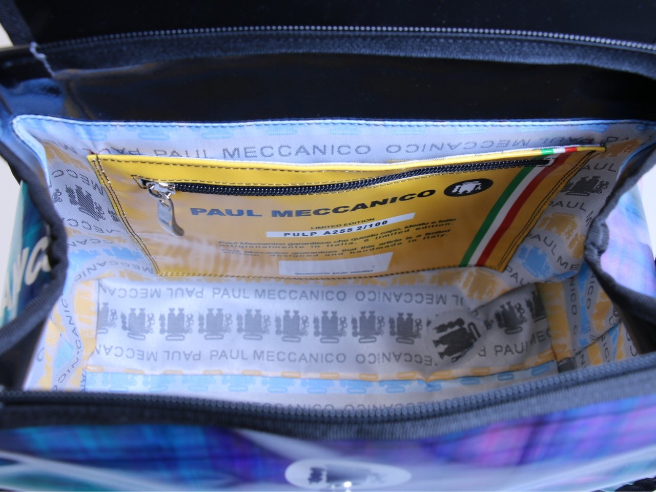 Il tuo pezzo è il N.2 su un totale di 100 borse ed è accompagnato da un Certificato di Autenticità firmato che riporta il tuo Codice di Autenticità e il numero di edizione.